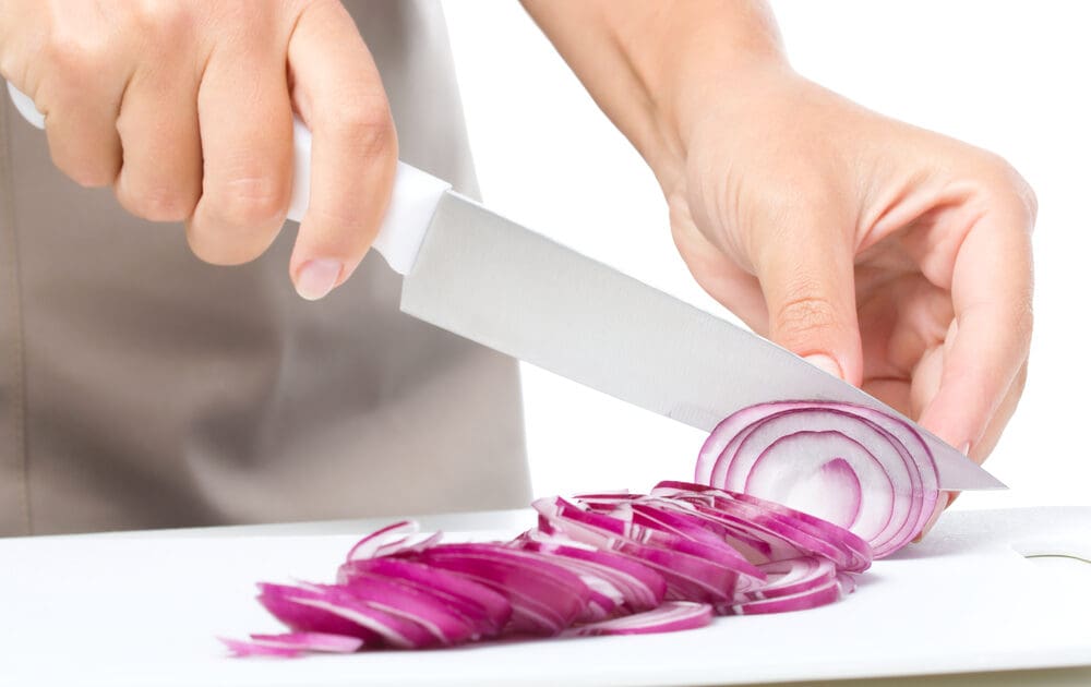 Image of chopping an onion via Shuttershock