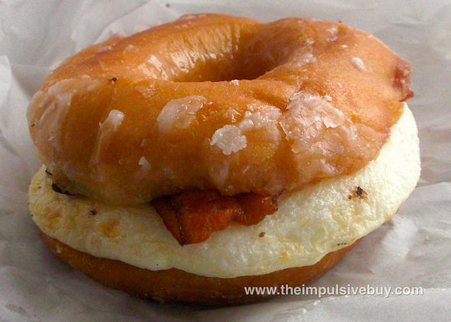 What’s more classic than donuts and coffee for a quick breakfast? I’ll tell you what: a Glazed Donut Breakfast Sandwich. Yes, it’s a glazed donut stuffed with eggs and bacon, the things that breakfast dreams are made of. If only they could make it on a maple bar.