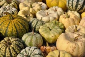 In bumpy, turbanesque shapes and a range of mottled green, orange and yellow colors, turban squash are quirky with a mild-tasting flesh. They can be decoration, but don’t pass up on the opportunity to roast and eat a couple of these babies.
