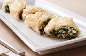 The first is a feta classic. The spanakopita depicted above is easy to make and an ideal recipe for Meatless Monday. Spanakopita combines iron-rich spinach with flavorful feta, all of which is bound together in a flaky phyllo crust. Take a vote with your family, but we’re pretty sure that this Greek tradition will be getting a unanimous “yes!”