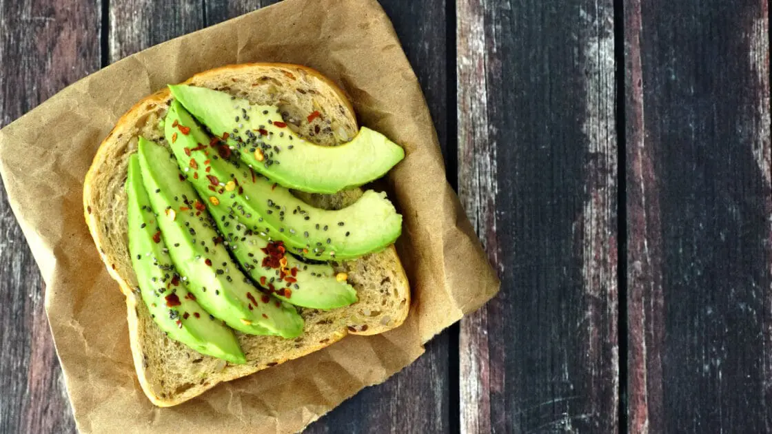 - Slice of toasted wholegrain bread topped with half an avocado and a dash of cracked red pepper.