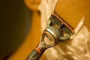 There are several harsh ingredients often found in shaving cream: propylene glycol is a humectant that is also found in antifreeze and brake fluid; triethanolamine, an emulsifying agent that keeps oil keeps oil and water from separating but can cause skin irritation and has been linked to cancer; sodium lauryl sulfate and sodium laureth sulfate, which despite making for a great lather, may mess with estrogen levels and can be carcinogenic; mineral oil, which can lock moisture on the skin but can also block pores and is actually a byproduct of petroleum. Shaving cream can also be filled with preservatives, fragrances, and colorants.