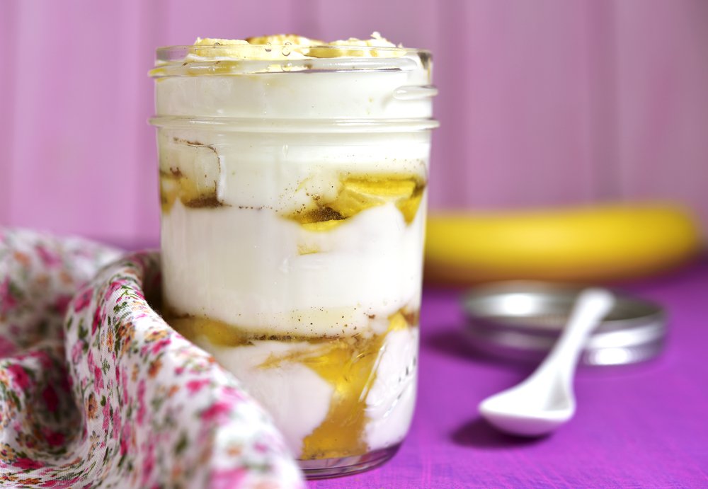 3. Layer fruit and cake in 8 mason jars or tall glasses. Drizzle each with 1/4 cup vanilla sauce. Garnish, if desired.