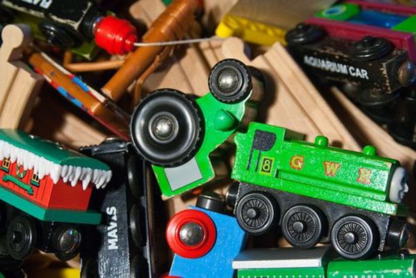 The biggest culprits in creating toy disorder are, always, the kids who use them. So to maintain your toy order, institute two very simple rules that even very young children can understand. First, only one toy set/collection/activity out at a time. So, no getting out the train set while you’re playing with the art stuff. This prevents kids from creating these huge messes that are overwhelming for both kids and parents to have to clean up. Second rule: once you’re through, put it back in its home. So, once Child 1 is done playing art and ready to get the train set out, no problem. She cleans up (maybe you help, depending on her age) and puts it back in its home; then she’s free to pull the train out.
