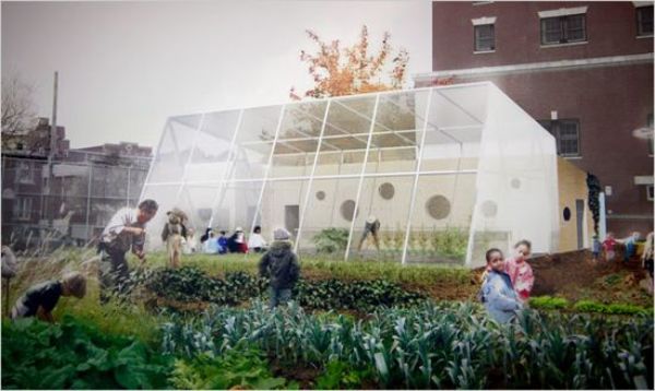 Even though Jamie Oliver has been banned from LA schools, back in NYC the original celebrity chef Alice Waters has introduced a school garden at PS 216. Following in her inventive food steps, PS 333 has built a greenhouse classroom combo.