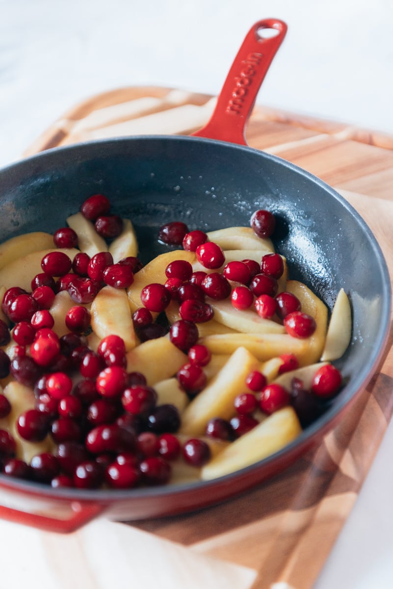 - Pour the mix on top of the sautéed apples-cranberry mix.