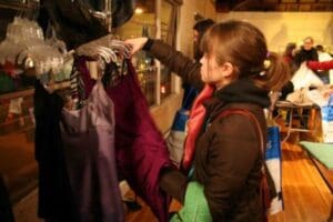 The clothing swap is a thrill. Though it costs $20 to get in—you can leave with hundreds of dollars in clothing. You bring a bag of wearable, preferably designer digs, and you get a bag to fill. The Swap team sorts and sets up your used wares on racks and tables. Anxious girls (I saw one guy there too) sip free champagne, snack and chat while waiting for the room to be prepared. Then, the doors open and the women move in. Some eagerly rush to racks and start grabbing, others hesitate and move more methodically. It doesn’t take long before all of the clothes are gone, bags are stuffed, and it’s hard to tell whether cheeks are red from all the champagne, the swapping or both.