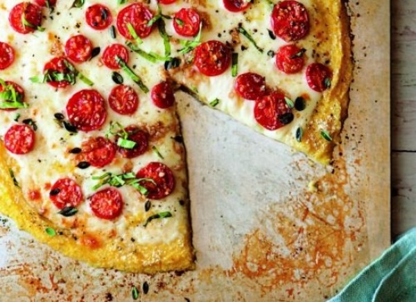 Pizza need not be off-limits if you are living a gluten-free lifestyle. There are many gluten-free pizza crusts available today that are perfect for quick weekday meals, but I enjoy making pizza crusts from polenta, as I like the texture and flavor that it contributes. There’s no need to wait for the crust to rise, as with yeast-risen wheat-flour bases, and it is a surprising dish to serve to company or at a small party. The crust will not be firm enough to pick up, but, enjoyed with a fork, it has the same satisfaction of wheat-flour pizza.